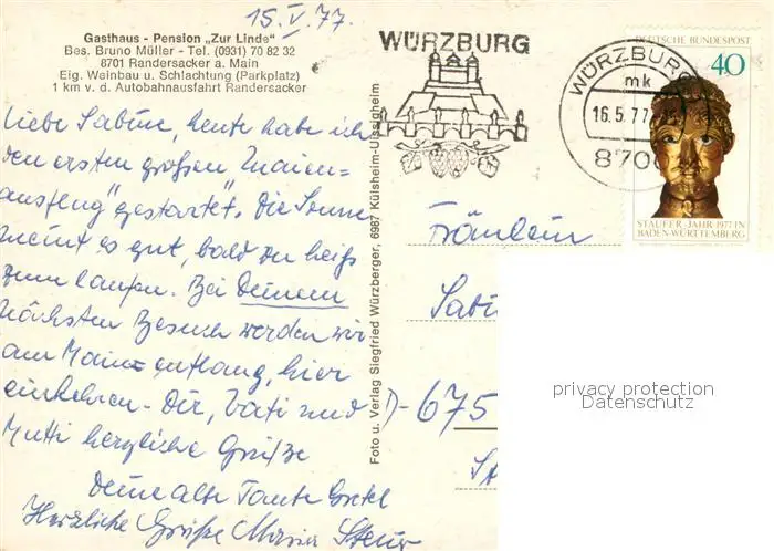 Randersacker Panorama mit Main und Weinbergen Randersacker postalisch gelaufen 1977 Erhaltung siehe scans [FriedD77] Frierer