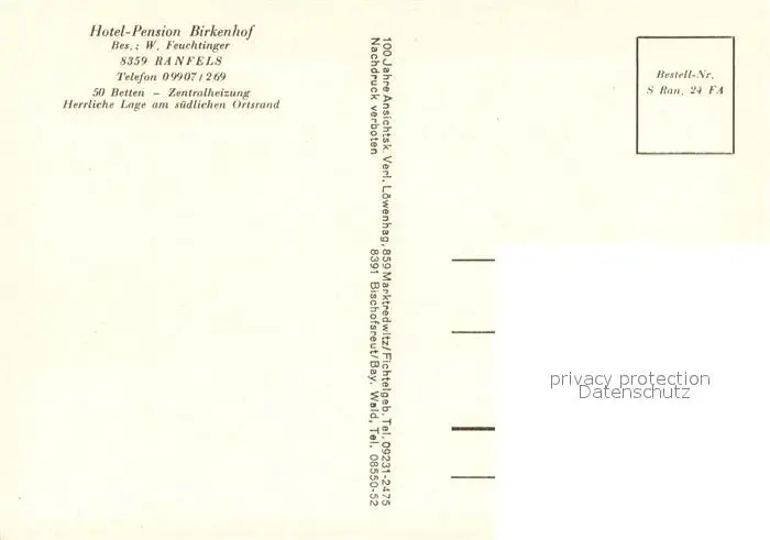 Ranfels Hotel Pension Birkenhof Gartenterrasse Ranfels postalisch nicht gelaufen nach 1965 Erhaltung siehe scans [FriedD77] Frierer