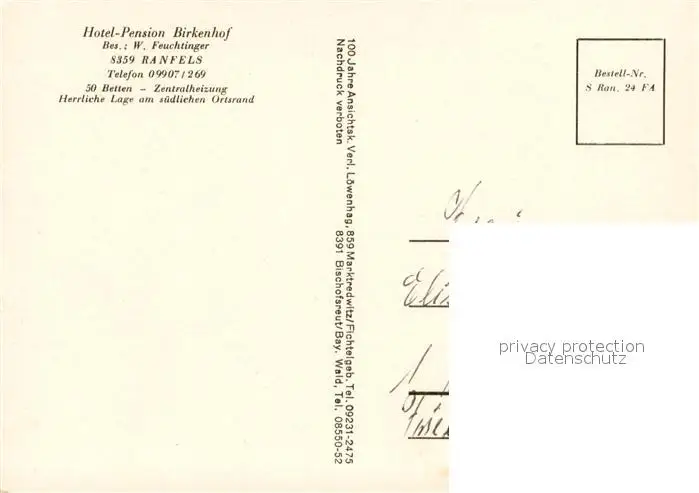 Ranfels Hotel Restaurant Birkenhof Ranfels postalisch nicht gelaufen nach 1965 Erhaltung siehe scans [WerneD78] WernPID7