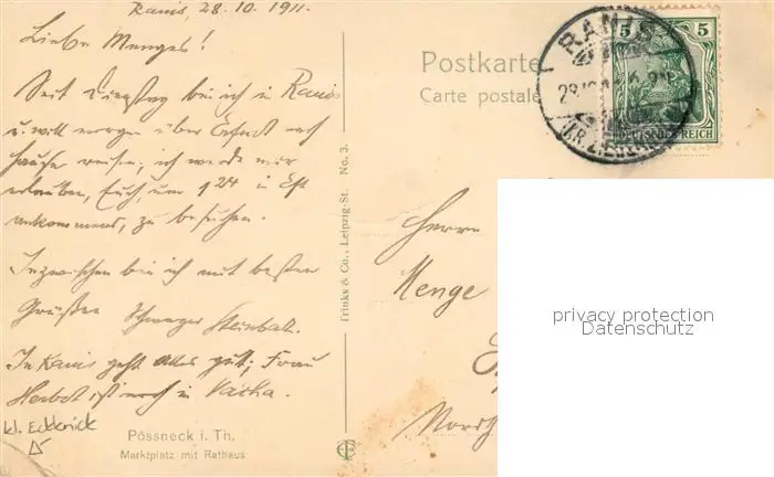 Ranis Marktplatz Rathaus Brunnen Ranis postalisch gelaufen 1911 Erhaltung siehe scans [FriedD77] Frierer