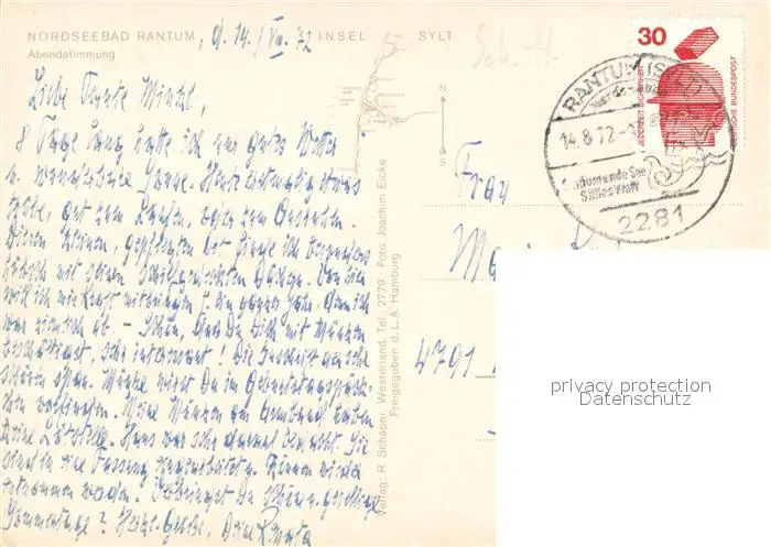Rantum_Sylt Abendstimmung Nordseebad Fliegeraufnahme Rantum Sylt postalisch gelaufen 1972 Erhaltung siehe scans [FriedD77] Frierer