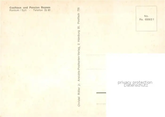 Rantum_Sylt Gasthaus Pension Boysen Reetdachhaus Nordseeinsel Rantum Sylt postalisch nicht gelaufen nach 1965 Erhaltung siehe scans [FriedD77] Frierer