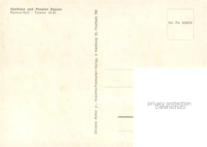 Rantum_Sylt Gasthaus und Pension Boysen Rantum Sylt postalisch nicht gelaufen nach 1965 Erhaltung siehe scans [WerneD78] WernPID7