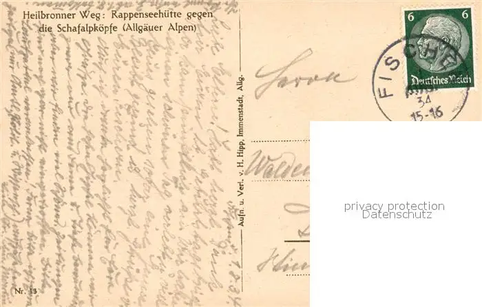 Rappenseehuette Heilbronner Weg Schafalpkoepfe Rappenseehuette postalisch gelaufen 1934 Erhaltung siehe scans [KathaD81] Kathoren