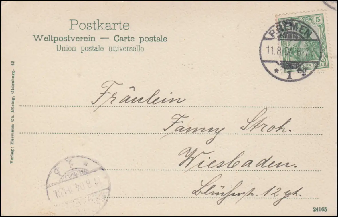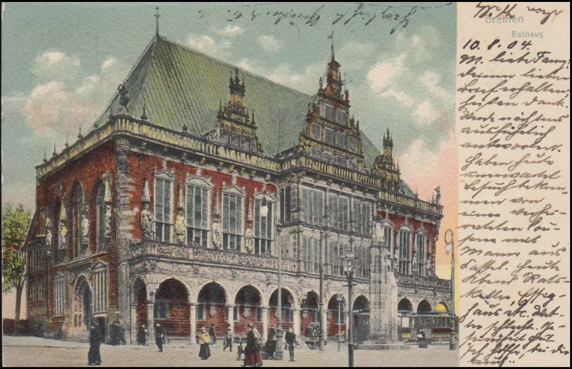 Carte de l'AK Hôtel de Ville à BREMEN 11.8.04 après WIESDADE 11.10.1904