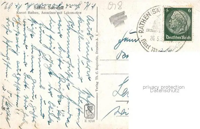 Rathen_Saechsische Schweiz Amselsee mit Lokomotive Felsformation Elbsandsteingebirge Rathen Saechsische Schweiz postalisch gelaufen 1939 Erhaltung siehe scans [FriedD77] Frierer
