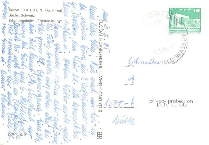 Rathen_Saechsische Schweiz Erholungsheim Friedensburg Aussenansicht Rathen Saechsische Schweiz postalisch gelaufen 1985 Erhaltung siehe scans [LiesaD40] LiesID40