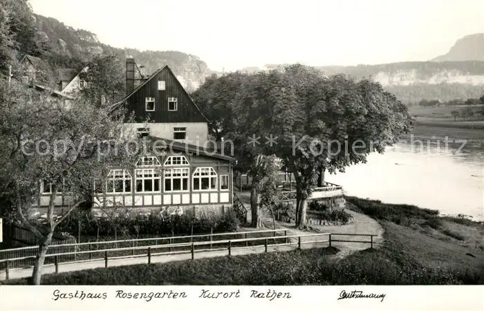 AK / Ansichtskarte Rathen_Saechsische Schweiz Gasthaus Rosengarten Elbepartie Rathen Saechsische Schweiz
