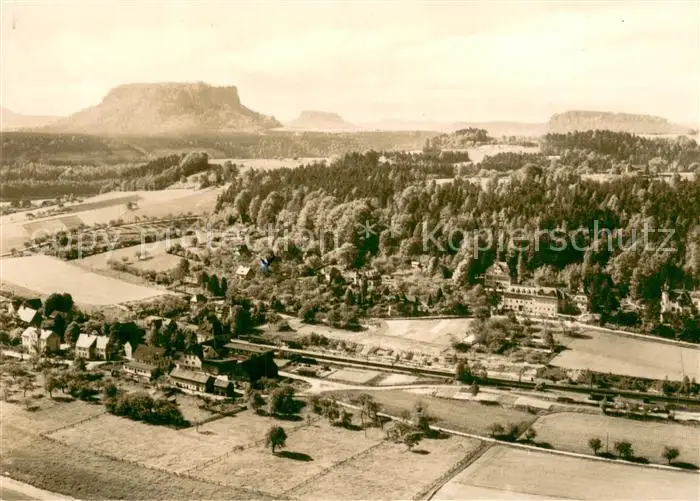 Rathen_Saechsische Schweiz Panorama mit Lilienstein Tafelberg Koenigstein und Pfaffenstein Rathen Saechsische Schweiz postalisch nicht gelaufen 1970 Fliegeraufnahme Erhaltung siehe scans [FriedD77] Fliegeraufnahme Frierer