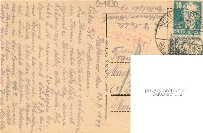 Rathenow Partie an der Havel Blick zur Kirche Rathenow postalisch gelaufen 1949 Erhaltung siehe scans [FriedD77] Frierer