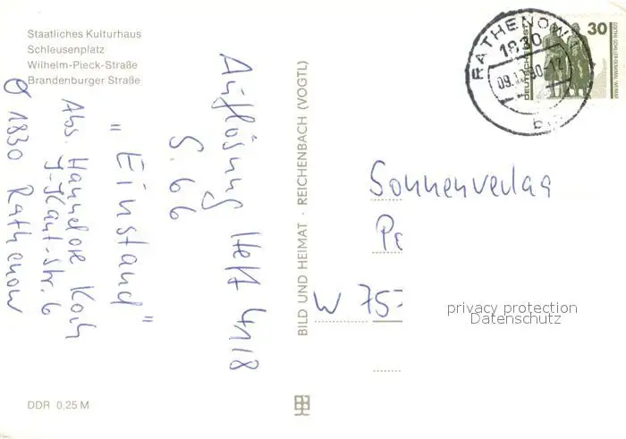 Rathenow Staatliches Kurhaus Schleusenplatz Wilhelm Pieck Strasse Brandenburger Strasse Rathenow postalisch gelaufen 1980 Erhaltung siehe scans [WerneD78] WernPID7