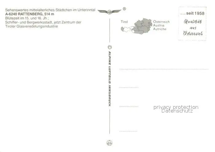 Rattenberg_Inn Schiffer- und Bergwerkstadt Zentrum Glasveredelungsindustrie Fliegeraufnahme Rattenberg Inn postalisch nicht gelaufen nach 1965 Erhaltung siehe scans [FriedD77] Frierer