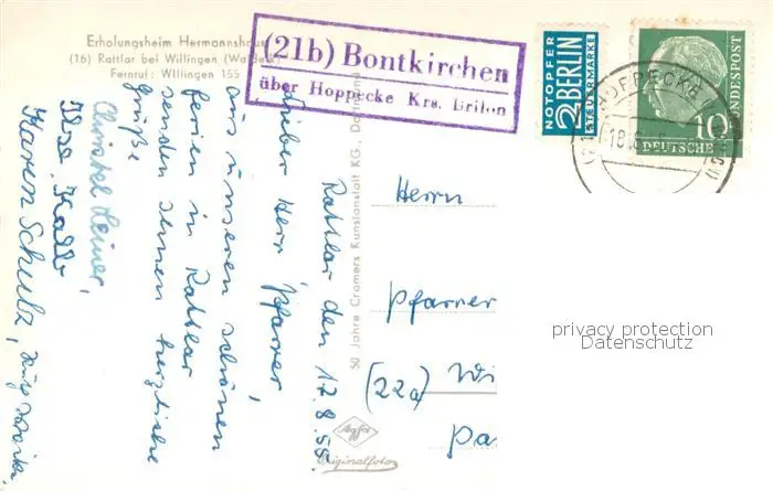 Rattlar_Willingen Panorama Erholungsheim Hermannshaus postalisch gelaufen 1955 Erhaltung siehe scans [FriedD77] Frierer