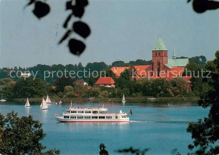 AK / Ansichtskarte Ratzeburg Blick zum Ratzeburger Dom mit Fahrgastschiff Mecklenburg Ratzeburg