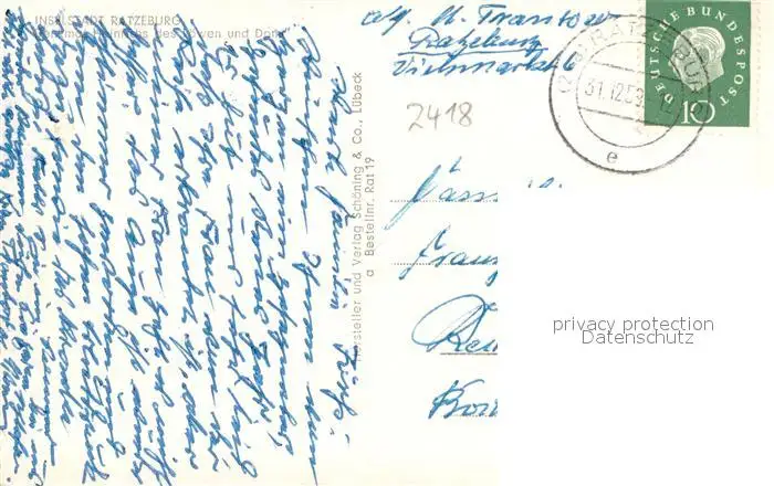 Ratzeburg Denkmal Heinrich des Loewen mit Dom Ratzeburg postalisch gelaufen 1959 Erhaltung siehe scans [WerneD78] WernPID7