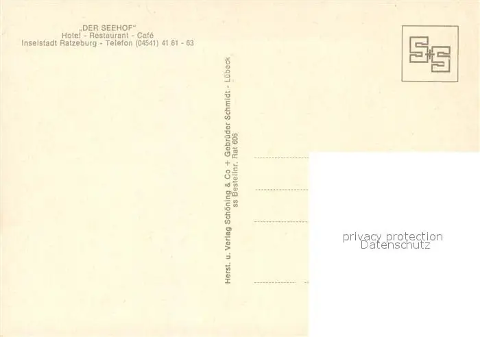 Ratzeburg Der Seehof Hotel Restaurant Cafe Ratzeburg postalisch nicht gelaufen nach 1965 Fliegeraufnahme Erhaltung siehe scans [WerneD78] Fliegeraufnahme WernPID7