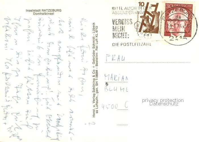 Ratzeburg Domhalbinsel Fliegeraufnahme Ratzeburg postalisch gelaufen 1975 Erhaltung siehe scans [WerneD78] WernPID7
