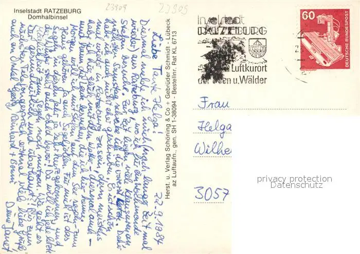 Ratzeburg Domhalbinsel Inselstadt Naturpark Lauenburgische Seen Fliegeraufnahme Ratzeburg postalisch gelaufen 1984 Erhaltung siehe scans [FriedD77] Frierer