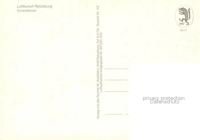 Ratzeburg Fliegeraufnahme Domhalbinsel Ratzeburg postalisch nicht gelaufen nach 1965 Erhaltung siehe scans [LiesaD40] LiesID40