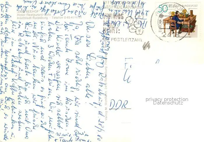 Ratzeburg Hotel-Restaurant Seehof Ratzeburg postalisch gelaufen 1980 Erhaltung siehe scans [PaolaD17] PaolPID1