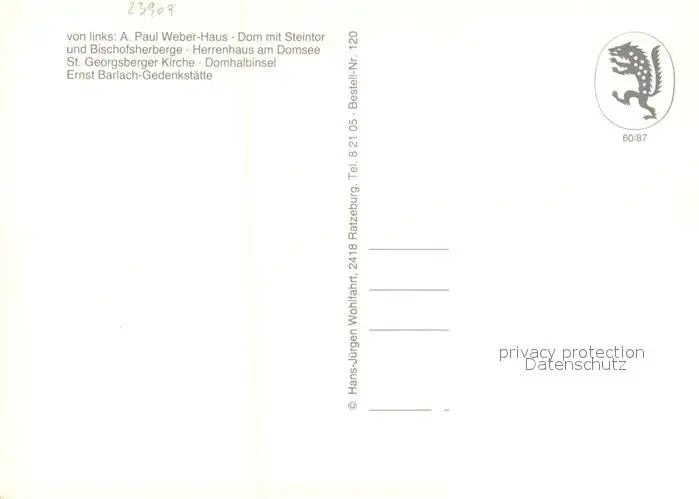 Ratzeburg Paul Weber Haus Dom Steintor Bischofsherberge Herrenhaus Ratzeburg postalisch nicht gelaufen nach 1965 Erhaltung siehe scans [KathaD81] Kathoren
