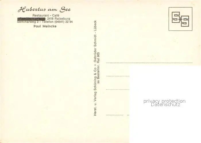 Ratzeburg Restaurant Hubertus am See Cafe Ratzeburg postalisch nicht gelaufen nach 1965 Erhaltung siehe scans [WerneD78] WernPID7