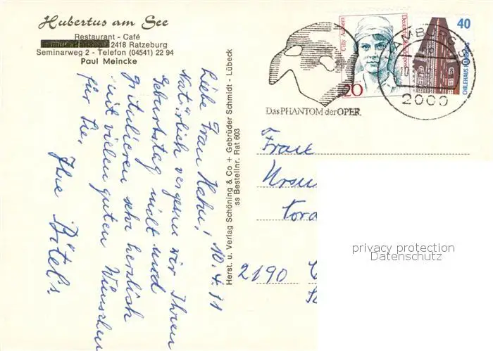Ratzeburg Restaurant Hubertus am See Cafe Ratzeburg postalisch gelaufen nach 1965 Erhaltung siehe scans [WerneD78] WernPID7