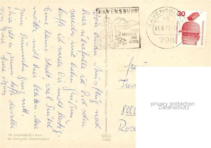 Ravensburg_Wuerttemberg Blaeserturm Mehlsack Obertor Panorama Ravensburg Wuerttemberg postalisch gelaufen 1973 Erhaltung siehe scans [KathaD81] Kathoren