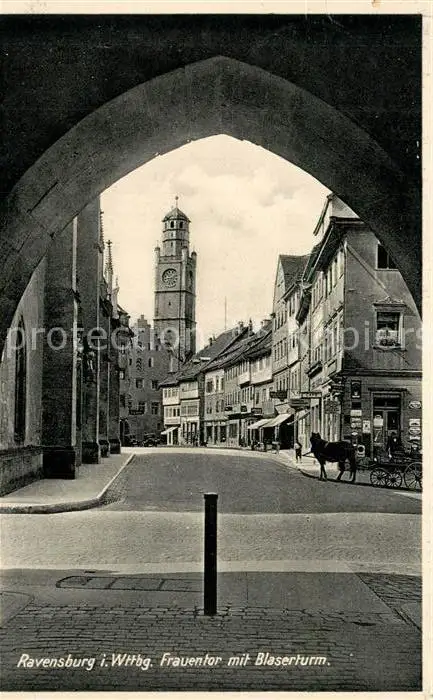 AK / Ansichtskarte Ravensburg_Wuerttemberg Frauentor mit Blaserturm Ravensburg Wuerttemberg