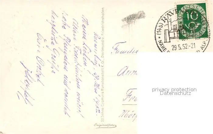 Ravensburg_Wuerttemberg Panorama Ravensburg Wuerttemberg postalisch gelaufen 1952 Erhaltung siehe scans [WerneD78] WernPID7