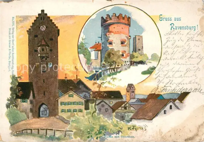 Ravensburg_Wuerttemberg Turm Obertor K?nstler Furas / Ravensburg Wuerttemberg postalisch gelaufen 1901 Erhaltung siehe scans [KathaD81] [Kathoren sa110box ]