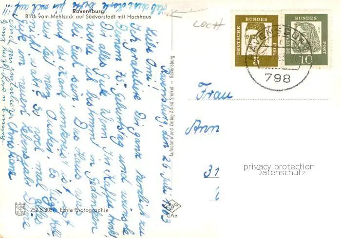 Ravensburg__Wuerttemberg Blick vom Mehlsack auf Suedvorstadt mit Hochhaus postalisch gelaufen 1963 Erhaltung siehe scans [WerneD78] WernPID7