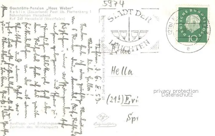 Reblin Versetalsperre Fuerwiggetalsperre Oestertalsperre Listertalsperre Reblin postalisch gelaufen 1959 Erhaltung siehe scans [WerneD78] WernPID7