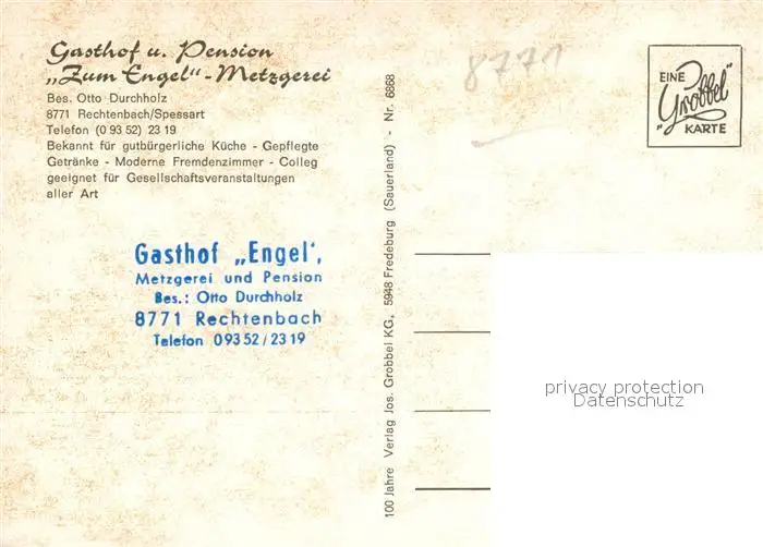 Rechtenbach_Spessart Gasthof Pension Zum Engel Metzgerei Rechtenbach Spessart postalisch nicht gelaufen nach 1965 Erhaltung siehe scans [FriedD77] Frierer