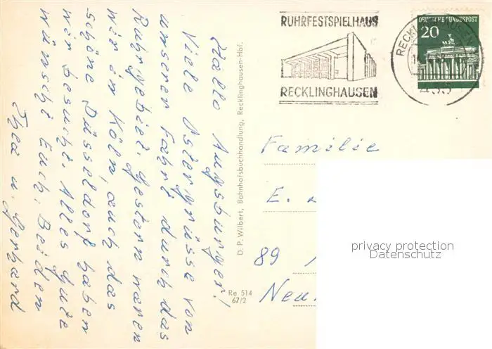 Recklinghausen__Westfalen Rathaus Hauptbahnhof Engelsburg Prosteikirche St Peter Stadtgarten Anlagen am Rathaus Stadthaus postalisch gelaufen 1968 Erhaltung siehe scans [FriedD77] Frierer