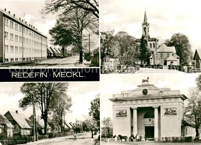 AK / Ansichtskarte Redefin Dorfstrasse Kirche Polytechnische Oberschule Staatliches Hengstdepot Reithalle Redefin