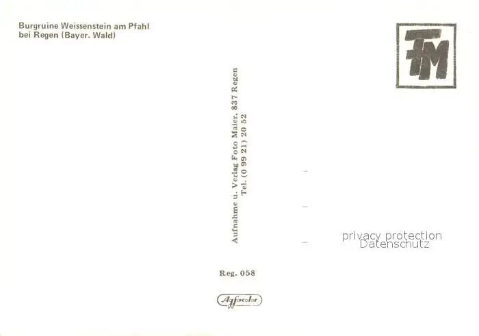 Regen Burgruine Weissenstein Pfahl Regen postalisch nicht gelaufen nach 1965 Erhaltung siehe scans [KathaD81] Kathoren