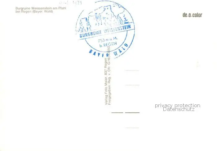 Regen Burgruine Weissenstein am Pfahl Fliegeraufnahme Regen postalisch nicht gelaufen nach 1965 Erhaltung siehe scans [WerneD78] WernPID7