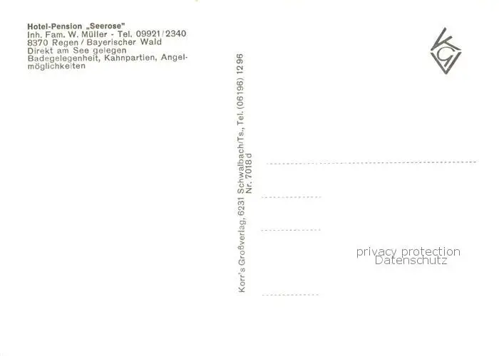 Regen Hotel Seerose Aussenansicht Regener See Regen postalisch nicht gelaufen 1921-1965 Erhaltung siehe scans [LiesaD40] LiesID40