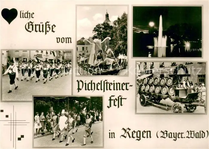 Regen Kategorie Alte Ansichtskarten Postkarten bx93890 Regen Pichelsteiner Fest Umzugsbilder Regen postalisch gelaufen 1964 Erhaltung siehe scans [WerneD78]