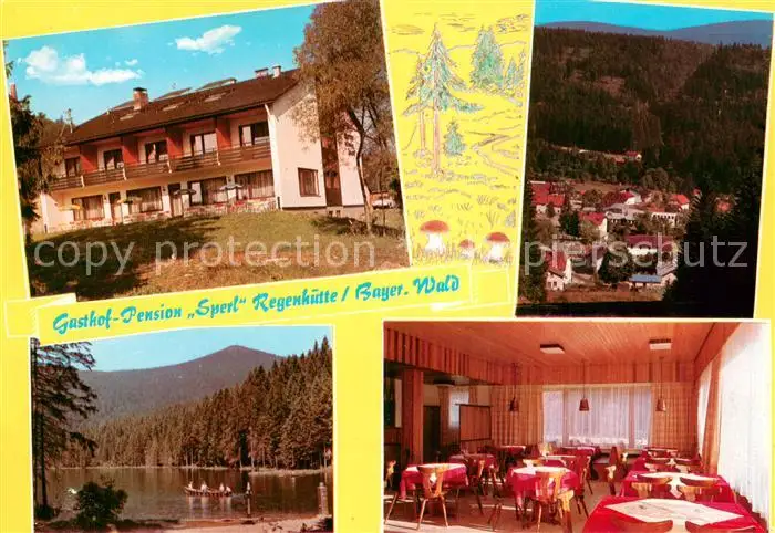 AK / Ansichtskarte Regenhuette_Bayerisch_Eisenstein Gasthof Pension Sperl Panorama Badesee Gastraum Regenhuette_Bayerisch