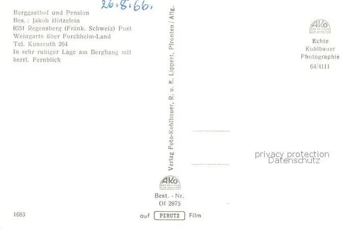 Regensberg_Kunreuth Berggasthof Pension Regensberg Kunreuth postalisch nicht gelaufen 1966 Erhaltung siehe scans [KathaD81] Kathoren