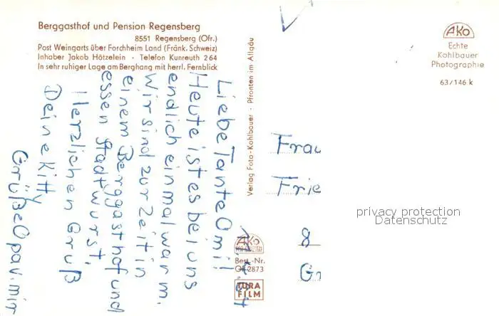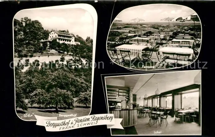 Regensberg_Kunreuth Berggasthof Pension Terrasse Lokal Regensberg Kunreuth postalisch gelaufen 1963 Erhaltung siehe scans [FriedD77] Frierer