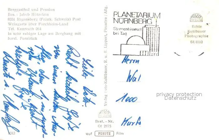 Regensberg_Kunreuth Pension Bergasthof Hoetzelein Regensberg Kunreuth postalisch gelaufen nach 1965 Erhaltung siehe scans [KathaD81] Kathoren