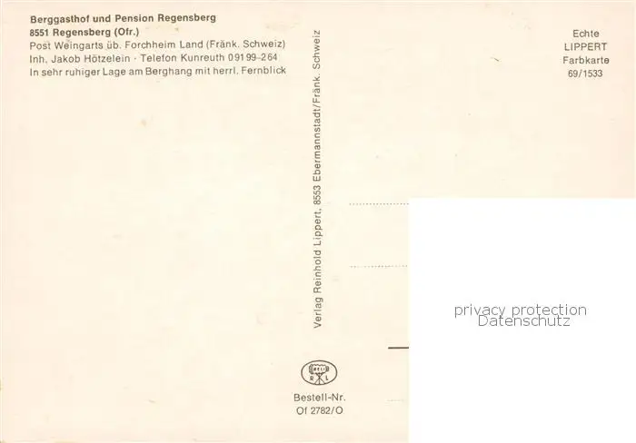 Regensberg_Kunreuth_Bayern Berggasthof Pension Regensberg postalisch nicht gelaufen nach 1965 Erhaltung siehe scans [FriedD77] Frierer