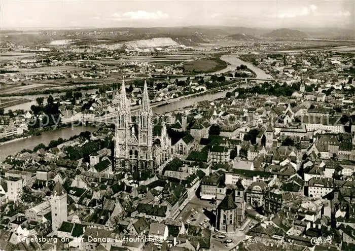 Regensburg Stadtpanorama mit Dom Fliegeraufnahme Regensburg postalisch nicht gelaufen 1962 Erhaltung siehe scans [FriedD77] Frierer