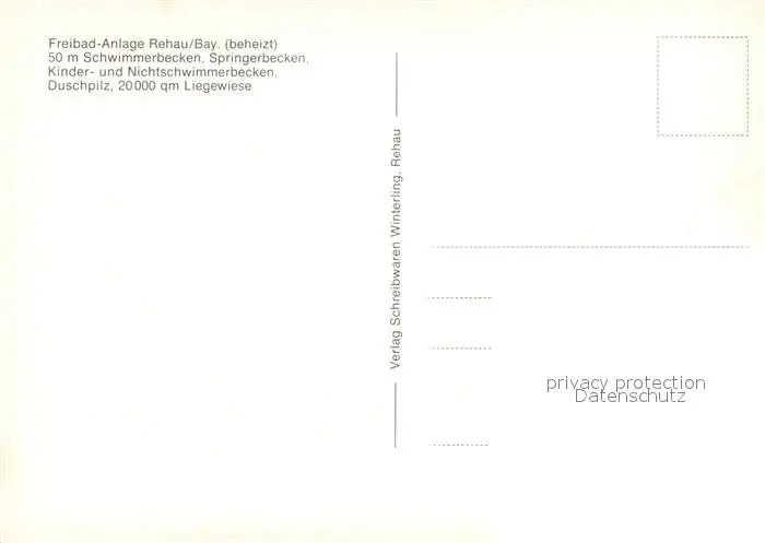 Rehau_Oberfranken Freibad Anlage Sprungturm Duschpilz Liegewiese Rehau Oberfranken postalisch nicht gelaufen nach 1965 Erhaltung siehe scans [WerneD78] WernPID7