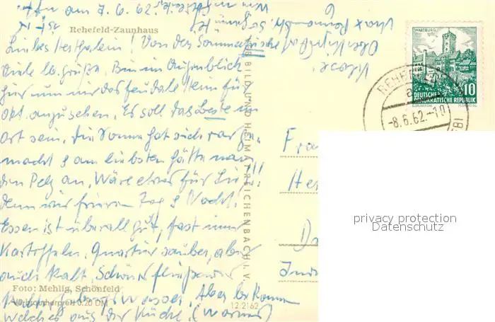 Rehefeld-Zaunhaus Panorama Rehefeld-Zaunhaus postalisch gelaufen 1962 Erhaltung siehe scans [FriedD77] Frierer