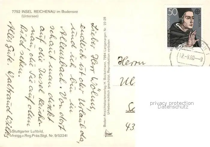 Reichenau_Bodensee Fliegeraufnahme Reichenau Bodensee postalisch gelaufen 1980 Erhaltung siehe scans [KathaD81] Kathoren