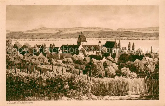 Reichenau_Bodensee Panorama mit Muenster Reichenau Bodensee postalisch nicht gelaufen 1921-1965 Erhaltung siehe scans [WerneD78] WernPID7